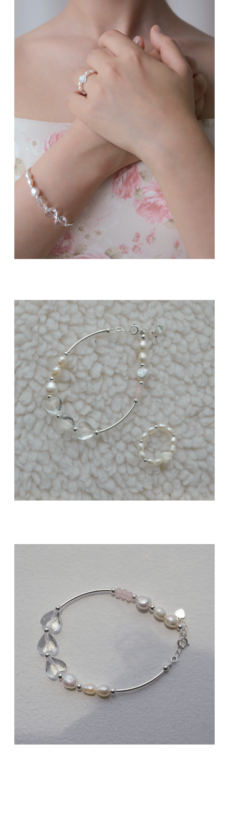 천연스톤 하트 백수정 팔찌